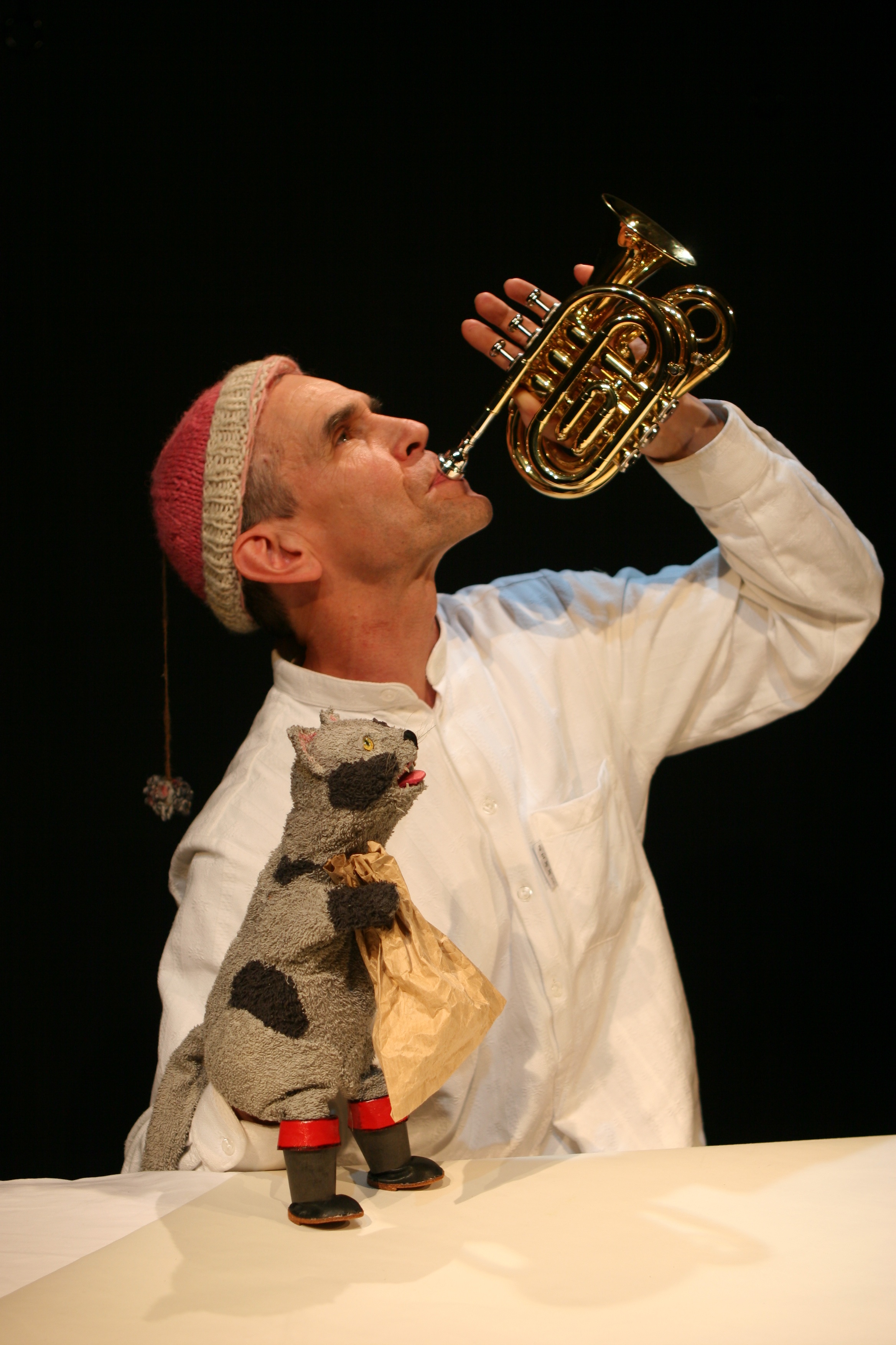 Ein Paar Stiefel, ein Sack zum Zuschnüren, Carabas - dieser seltsame Name, das Bad im See und der freche Trick mit den Kleidern...und dann das Zusammentreffen mit dem grossen Zauberer, von dem doch gesagt wird, er sei ein Menschenfresser gewesen: Wie der Kater seinen mausarmen Herrn zu einem reichen Leben geführt hat, ja das ist wirklich märchenhaft. Endlich soll auch die Königin alles erfahren: Der Kater und sein Meister lassen die alten Geschichten wieder aufleben und freuen sich königlich in Erinnerung an so manche geglückte List. Das Märchen erzählt von der Kraft, die aus dem Vertrauen in die Intuition entstehen kann. Regie: Margrit Gysin, Figuren und Spiel:Michael Huber.